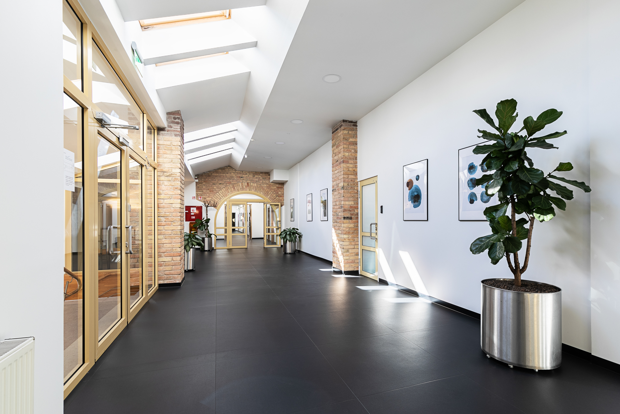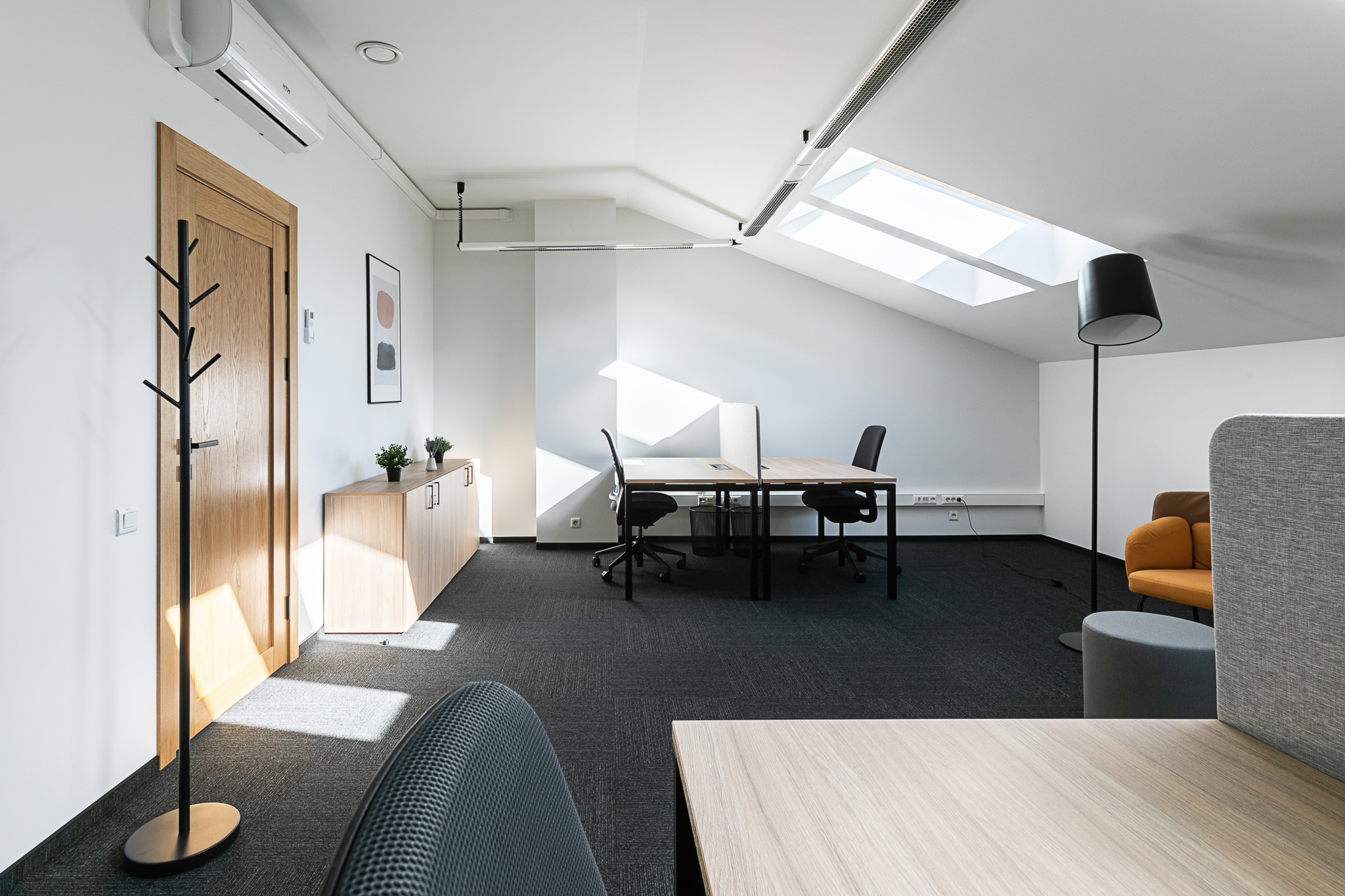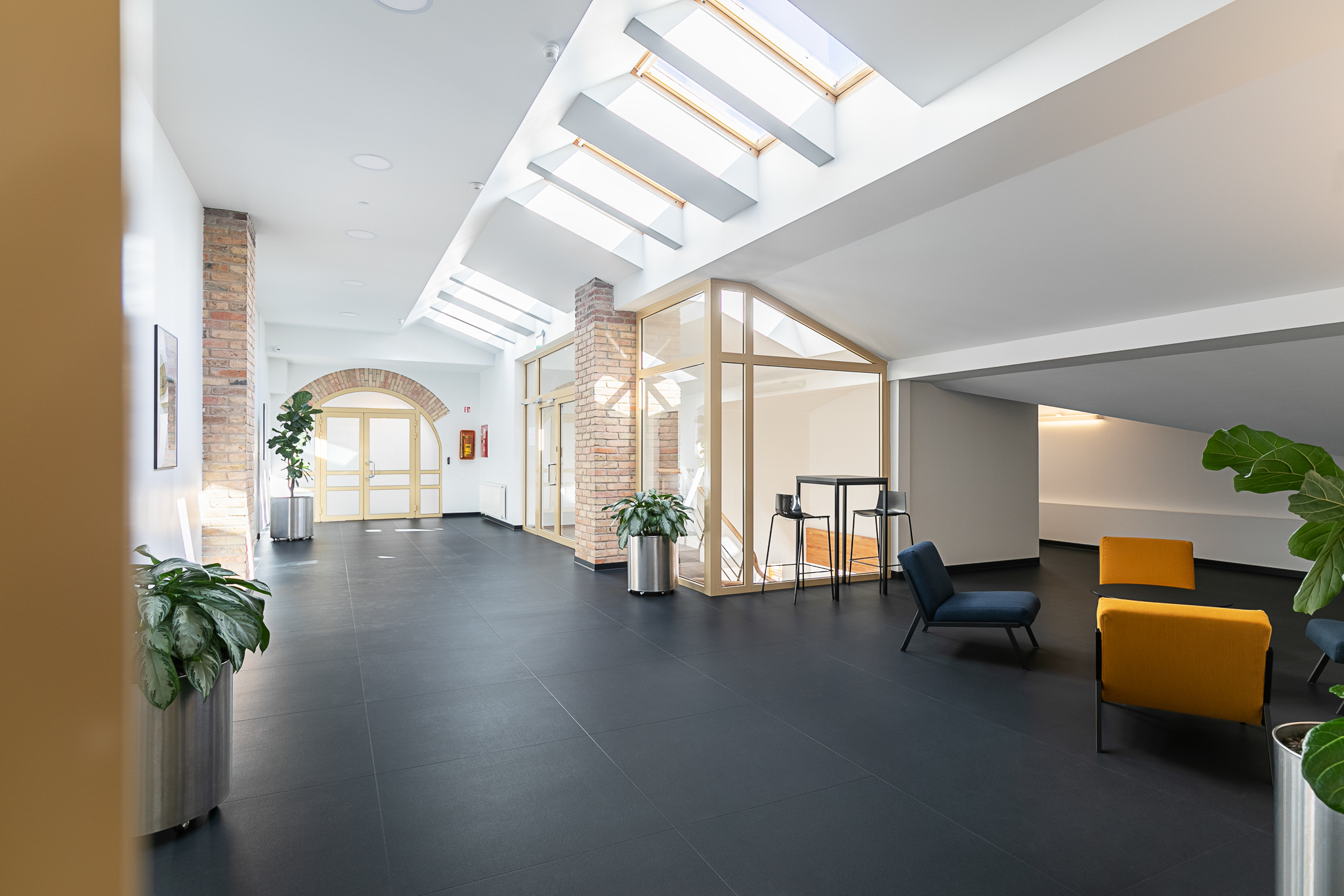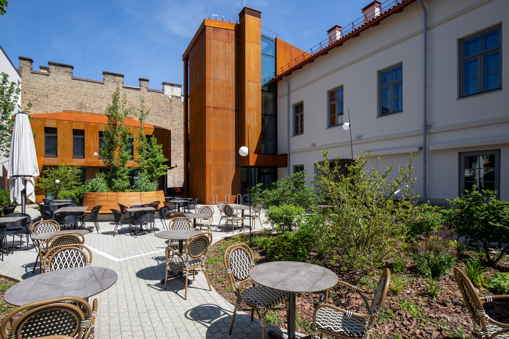 The business center includes over 2,000 square meters of co-working space operated by Talent Garden Vilnius. In total, the space has more than 230 workstations, the majority of which are in private offices, as well as a modern conference hall with a capacity of 150 seats. Nearby cultural landmarks include the Radvilų Palace, Teacher’s House, Lithuanian Technical Library, St. Catherine’s Church and other cultural venues, along with numerous cafes, restaurants.