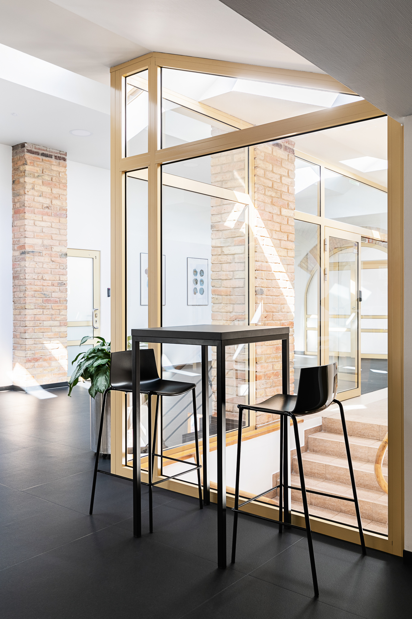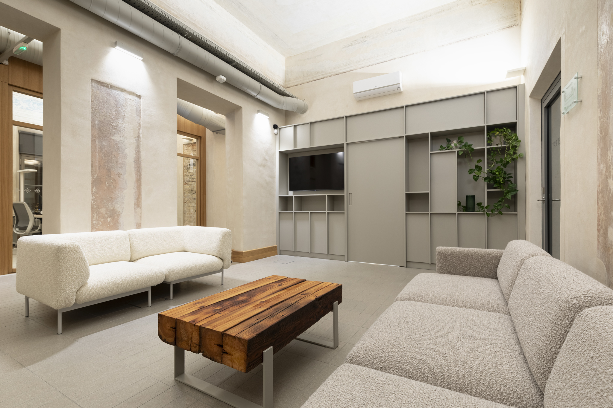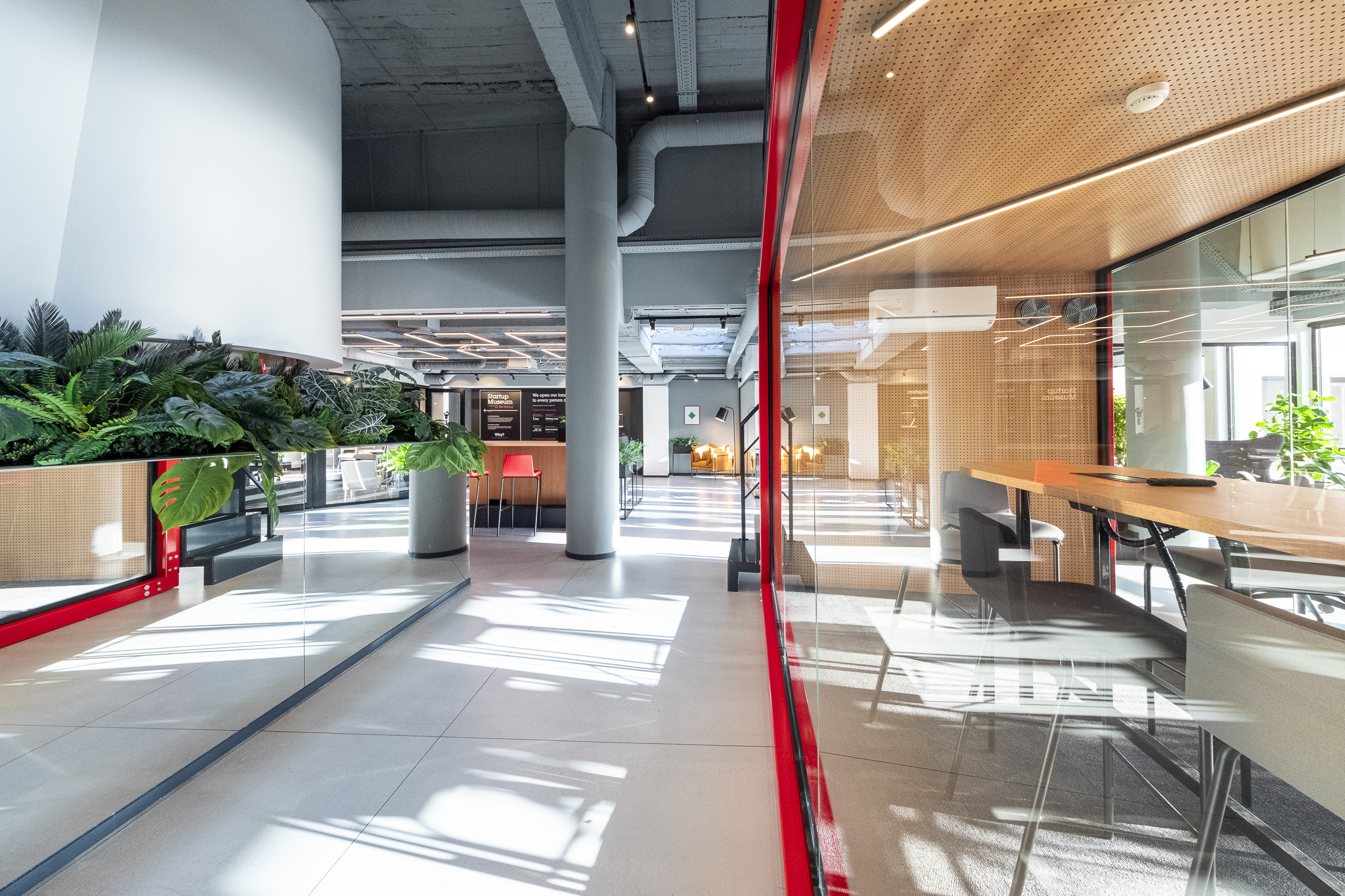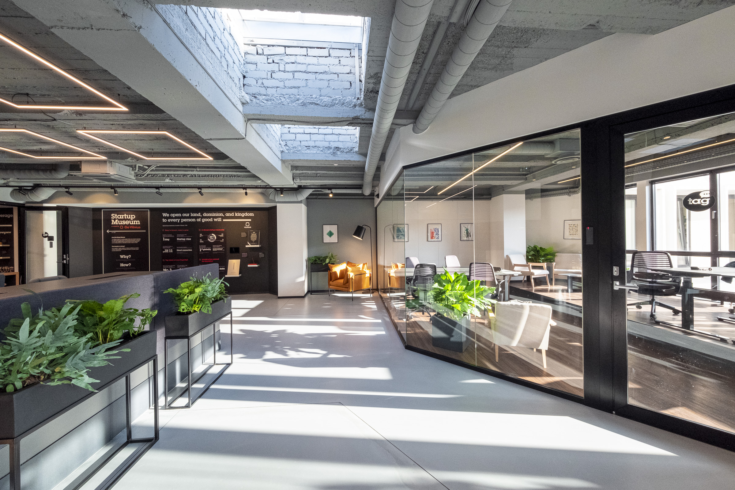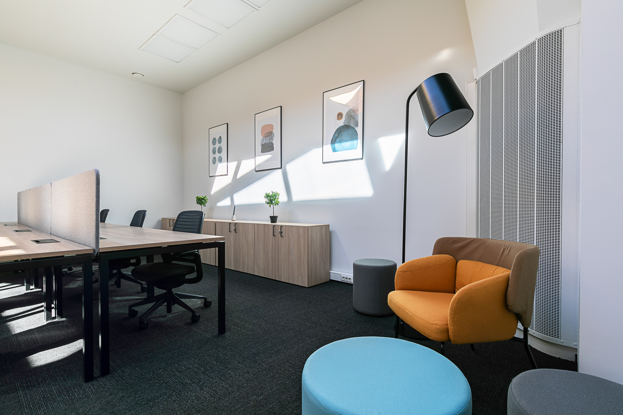 The business center includes over 2,000 square meters of co-working space operated by Talent Garden Vilnius. In total, the space has more than 230 workstations, the majority of which are in private offices, as well as a modern conference hall with a capacity of 150 seats. Nearby cultural landmarks include the Radvilų Palace, Teacher’s House, Lithuanian Technical Library, St. Catherine’s Church and other cultural venues, along with numerous cafes, restaurants.